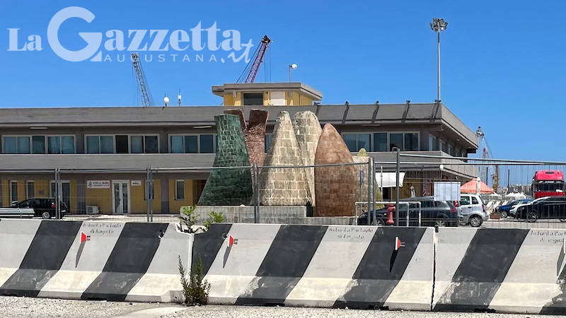(Nella foto di copertina: scultura all’ingresso del porto commerciale di Augusta)