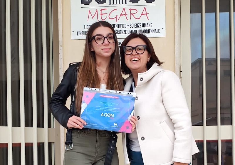 (Nella foto di copertina, da sinistra: Alice Accaputo e Gabriella Lombardo all’ingresso del liceo classico di Augusta)