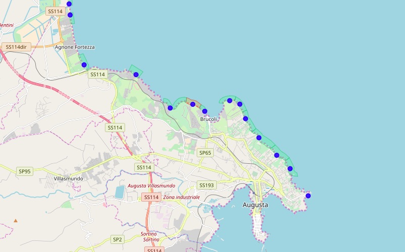 Ad Augusta sono tredici i punti di campionamento, da quello più a nord del territorio, “Agnone-Baia Conchiglie km 0,5 sud fiume”, a quello più a sud, “200 mt sud Faro S. Croce”.