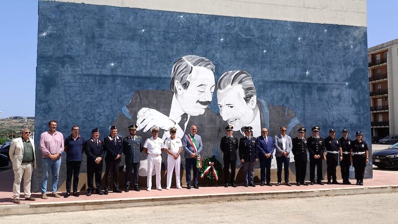 Augusta, 19 luglio, sotto il murale per ricordare Borsellino e la scorta