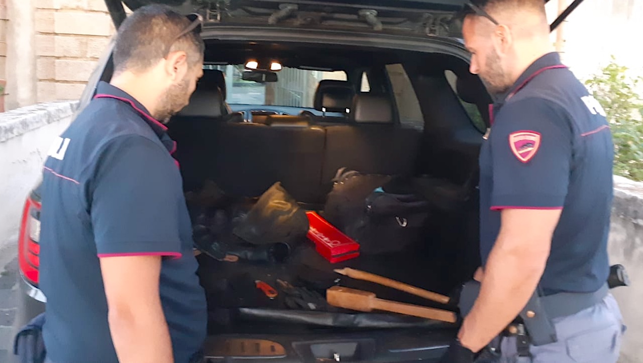 I due denunciati, che viaggiavano a bordo di un suv, sono stati trovati in possesso anche di un passamontagna, di guanti e di alcune mazze.