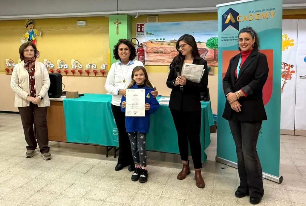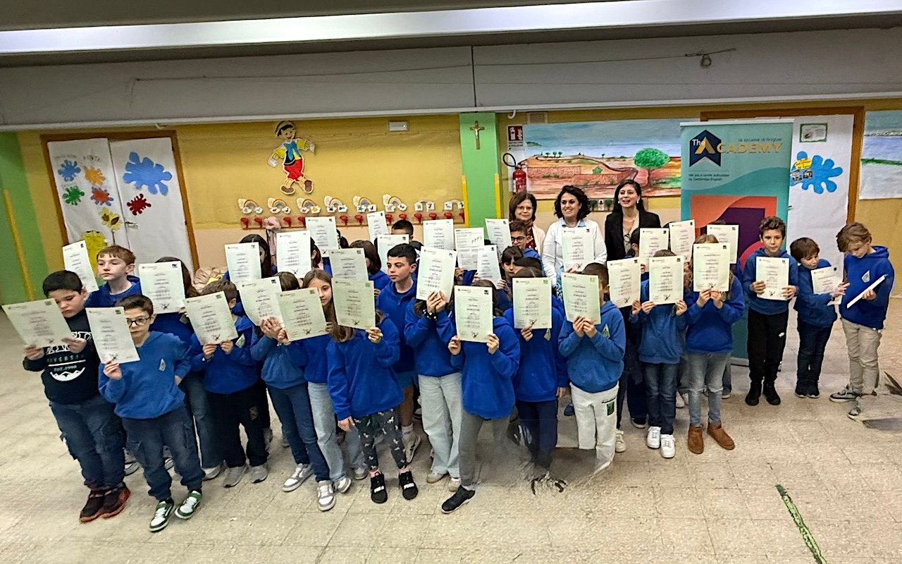 AUGUSTA – Sono stati consegnati 44 attestati di certificazione di lingua inglese “Cambridge” agli alunni delle classi terza e quarta della scuola primaria dell’Istituto comprensivo “Domenico Costa”, un traguardo che testimonia l’efficacia del metodo didattico adottato. La cerimonia di consegna si è svolta a fine novembre nei locali del plesso Polivalente, alla presenza della dirigente scolastica Valentina Lombardo, della referente del centro autorizzato “Cambridge” di Siracusa, degli alunni, dei docenti e dei genitori.