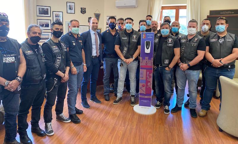 Augusta, club di harleysti dona colonnina igienizzante al commissariato di polizia