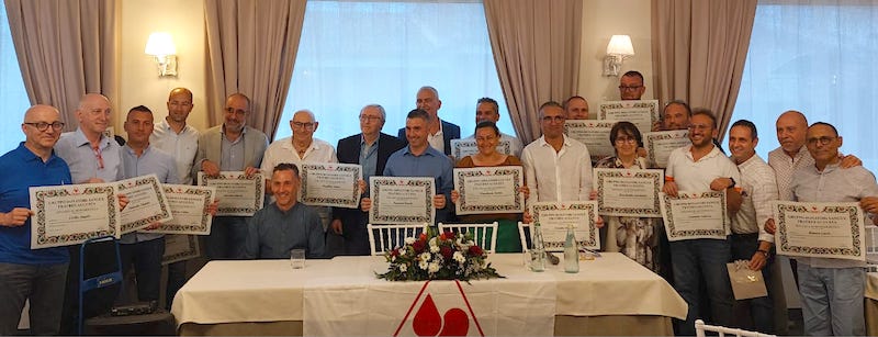 Nell’occasione della ricorrenza istituita dall’Organizzazione mondiale della sanità, la “Fratres”, riunitasi in un noto locale cittadino, ha consegnato le benemerenze a quanti, nel corso della propria “carriera” di donatore hanno raggiunto traguardi significativi, segnatamente 35 o 50 donazioni volontarie di sangue o plasma, al 31 dicembre 2022.