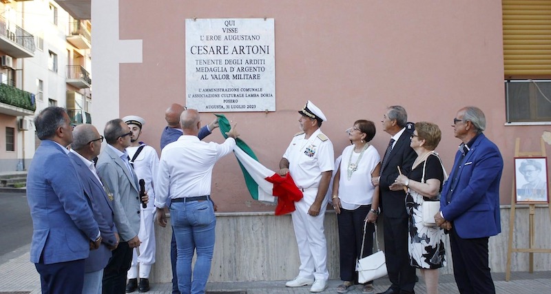 L’iniziativa è stata promossa dal Comune di Augusta e dall’associazione storico-culturale “Lamba Doria“, con la collaborazione del Comando Marisicilia, e ha visto gli interventi del sindaco Giuseppe Di Mare, dell’assessore alla cultura Pino Carrabino, del referente locale dell’associazione, Francesco Paci, del vicepresidente dell’associazione, generale Massimo Lucca. Quindi il direttore del Museo della Piazzaforte, Antonello Forestiere è stato invitato a concludere la cerimonia con una relazione storica sull’azione di Artoni ad Augusta del 30-31 luglio 1943.