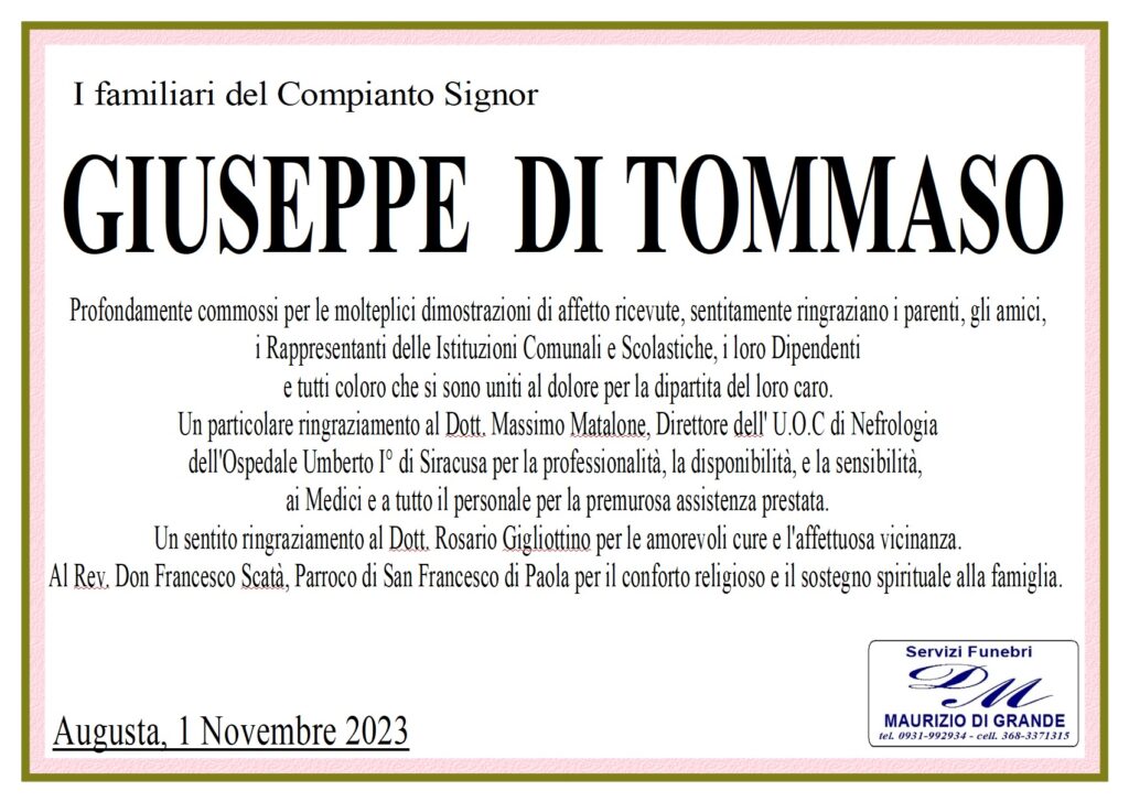 Augusta, i familiari del compianto Giuseppe Di Tommaso ringraziano