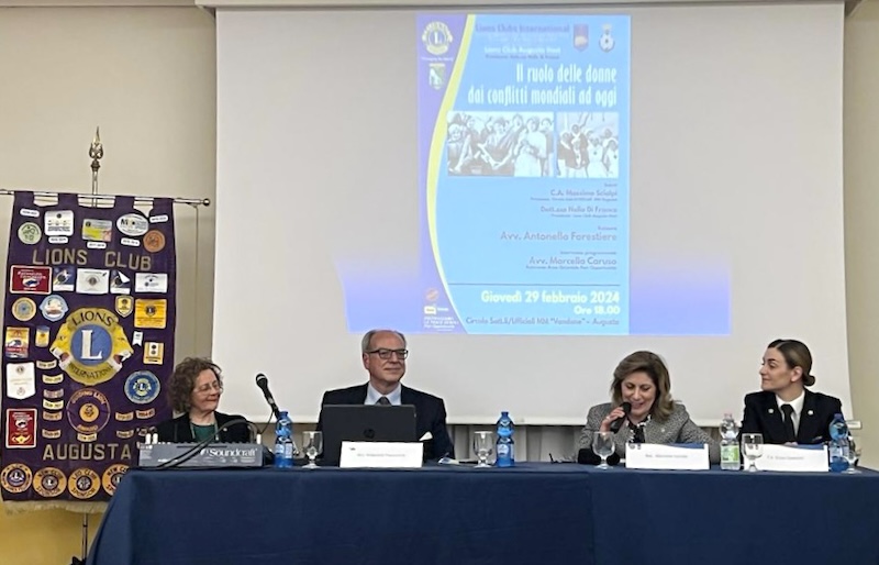 AUGUSTA – Il Lions club Augusta host presieduto da Nella Di Franco ha tenuto, lo scorso mercoledì al Circolo ufficiali Marina militare “Vandone” di Augusta un convegno sul tema “Il ruolo delle donne dai conflitti mondiali ad oggi“.