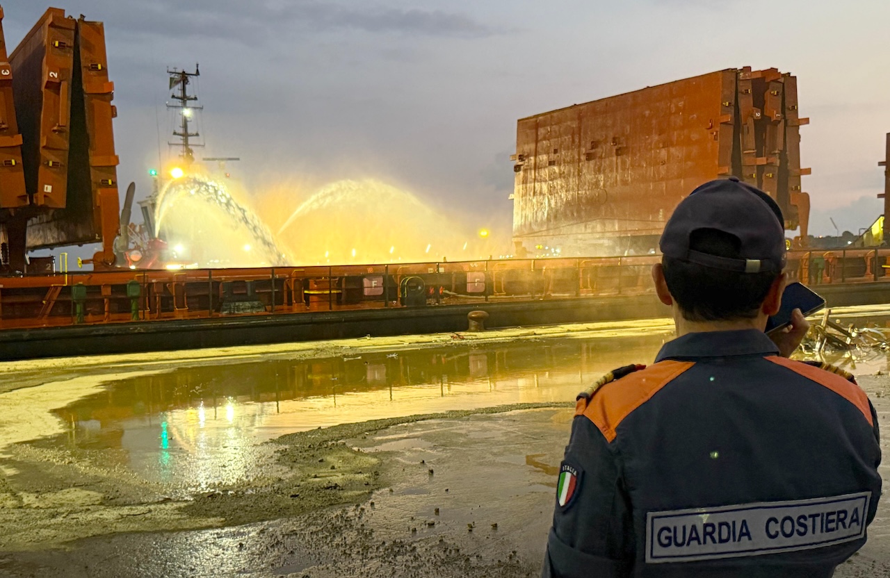 Gli agenti della Guardia costiera hanno sottoposto a sequestro la stiva della nave e il carico di rottami ferrosi attinto dal fuoco, denunciando i titolari all’autorità giudiziaria per l’ipotesi di reato di incendio colposo.