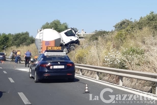 Sono intervenuti i vigili del fuoco e i carabinieri di Augusta. Sarà una ditta specializzata a rimuovere l’autocisterna.