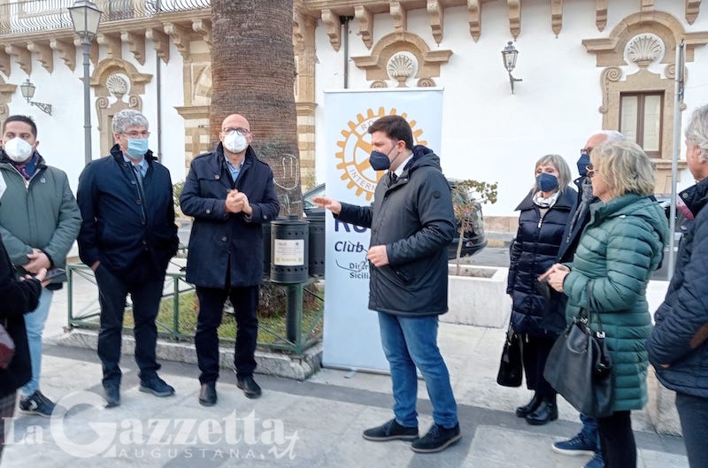 Nella sobria cerimonia simbolica di consegna tenuta ieri pomeriggio in piazza Duomo per esporre il progetto ai rappresentanti della stampa, sono intervenuti il presidente del Rotary club Augusta, Pietro Forestiere e il sindaco Giuseppe Di Mare. Hanno presenziato per il Rotary anche il governatore distrettuale designato Giuseppe Pitari, il co-segretario e il prefetto di club, rispettivamente Francesco Messina e Gaetanella Bruno, e diversi soci. Per l’amministrazione comunale, oltre al primo cittadino che ha ringraziato il club di servizio perché “questa sinergia con il Rotary ci aiuta a divulgare quella cultura legata alla gestione del rifiuto“, anche l’assessore alla Transizione ecologica Concetto Cannavà. Presenti altresì il vicepresidente del consiglio comunale Biagio Tribulato e il consigliere d’opposizione Giancarlo Triberio.