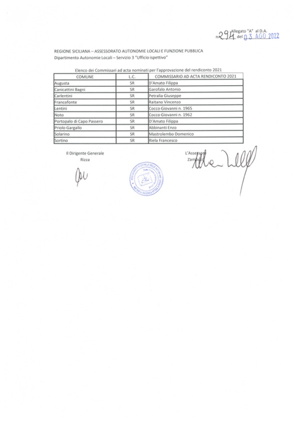 Zambuto ha pertanto nominato, col decreto assessoriale, i commissari ad acta che dovranno “svolgere preliminarmente le necessarie funzioni di impulso e di sollecitazione per l’approvazione del rendiconto di gestione dell’esercizio finanziario 2021 presso i rispettivi Comuni, sostituendosi, se necessario, per l’esercizio dei relativi poteri, agli organi inadempienti degli stessi Comuni per l’approvazione dei rendiconti medesimi“.