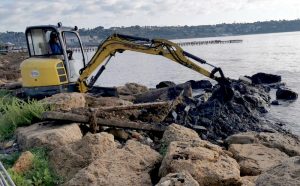 All’inizio della settimana, le intense precipitazioni piovose ad Augusta hanno fatto emergere le annose criticità, quali ad esempio l’allagamento di viale America (vedi foto di copertina, scattata martedì 24 intorno alle ore 10), all’ingresso della città, di via delle Saline e dell’adiacente piazzale sul lungomare Rossini, dove nell’occasione è intervenuta la squadra lavori del Comune. Proprio su quel tratto critico del lungomare, è stato effettuato stamani lo sgombero con pala meccanica dei canaloni di scarico (vedi foto all’interno).