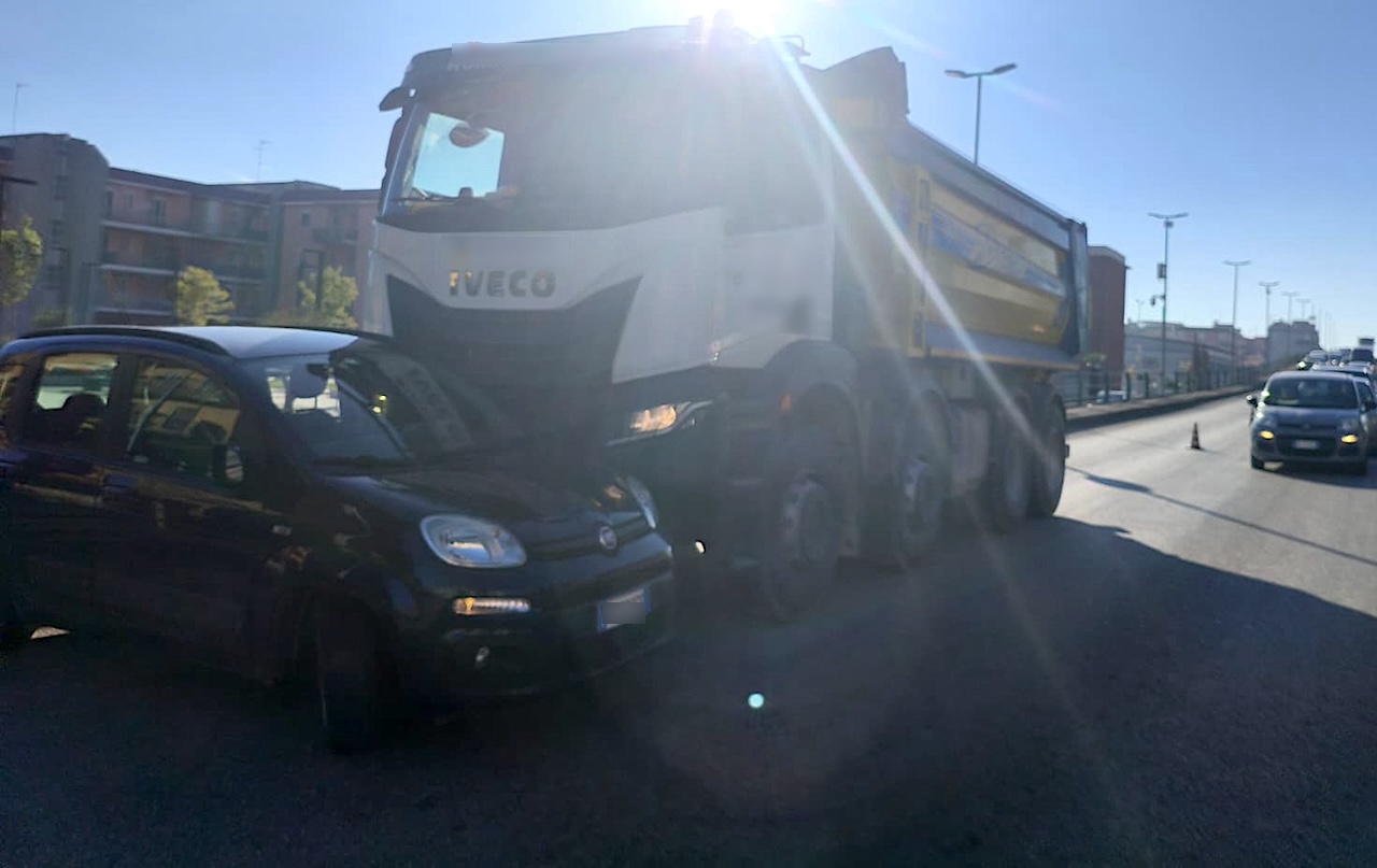 Secondo quanto riferito dalla Polizia locale intervenuta sul posto, un camion ribaltabile proveniente dal viadotto e diretto verso la Borgata, appena immesso sul tratto del cavalcaferrovia, avrebbe effettuato un improvviso cambio di corsia verso destra urtando una Fiat Panda che transitava accanto.