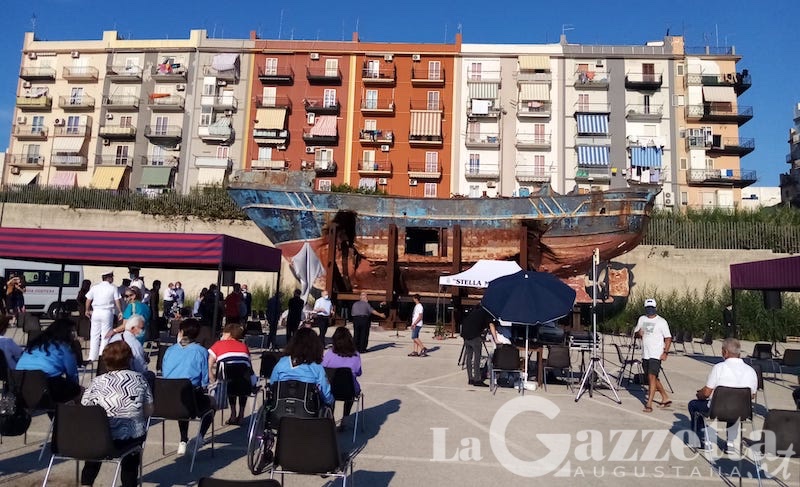 Ricordiamo che il precedentemente battezzato “relitto della morte” è il peschereccio che il governo Renzi volle recuperare dai fondali del Canale di Sicilia trasportandolo al pontile Nato nel porto di Augusta, circa un anno dopo il tragico affondamento del 18 aprile 2015 nel quale persero la vita diverse centinaia di migranti, numero mai definito, con soli 28 superstiti. Nella disponibilità del Comune di Augusta dal 2019, il relitto appunto dall’esposizione a Venezia è infine tornato in città, alla nuova darsena, accolto da una cerimonia cristiana e musulmana organizzata lo scorso 13 giugno da “Comitato 18 aprile”, “Stella Maris” Augusta e Comune di Augusta. In quell’occasione l’amministrazione Di Mare aveva confermato che lì sarebbe nato il “Giardino della memoria“, a differenza dell’orientamento di precedente amministrazione e comitato che ne vedevano la musealizzazione nella chiesetta all’aperto del Monte.