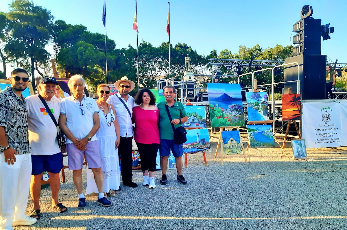Dopo la mostra collettiva temporanea di pittura in una caffetteria del centro storico sul tema “Luci e colori di un’Isola straordinaria”, a cui ha fatto seguito la collettiva “Estate artistica”, i pittori associati hanno esposto alcune loro opere che ritraggono il territorio augustano in piazza Castello, lo scorso martedì 16 luglio. Un’iniziativa programmata per la festa della Madonna del Carmine, protettrice dei salinari, nell’ambito del cartellone comunale di eventi “Augusta d’estate“.