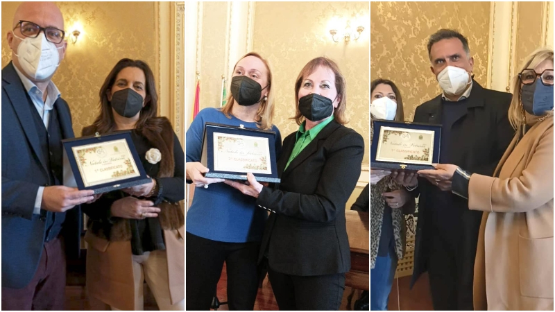 AUGUSTA – Sobria cerimonia di premiazione, stamattina, nel salone di rappresentanza del Comune: il Comitato commercianti Augusta (Cca) ha conferito la targa di merito a tre vincitori dell’iniziativa “Natale in vetrina” 2021. Lo ha potuto fare solo stamani per ragioni legate alla persistente pandemia da Covid-19, come ha in apertura precisato il sindaco Giuseppe Di Mare.