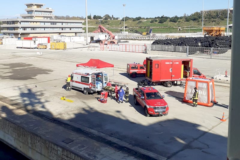 AUGUSTA – Nei giorni scorsi il porto commerciale di Punta Cugno è stato lo scenario per un’esercitazione congiunta Nbcr di tipo chimico, tra comando provinciale dei Vigili del fuoco, Autorità di sistema portuale e Croce rossa di Siracusa. La simulazione di incidente è stata effettuata in parte sulla banchina, in parte a bordo della nave che trasporta zolfo ormeggiata.