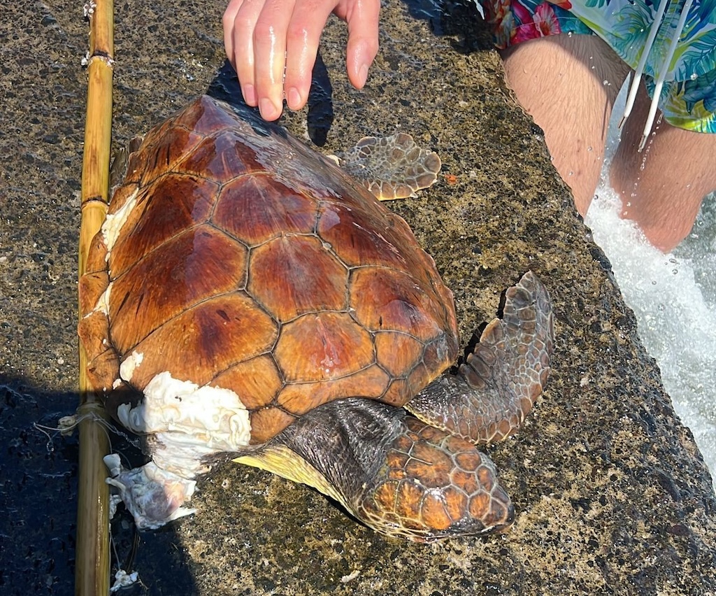 L’esemplare si era imbattuto in una lenza abbandonata, che gli ha lacerato una pinna fino ad amputarla. Due bagnanti augustani, Gianmarco Mercurio e Gaia Callari, hanno soccorso la tartaruga in mare, portandola delicatamente a riva e liberandola dalla morsa del filo da pesca.