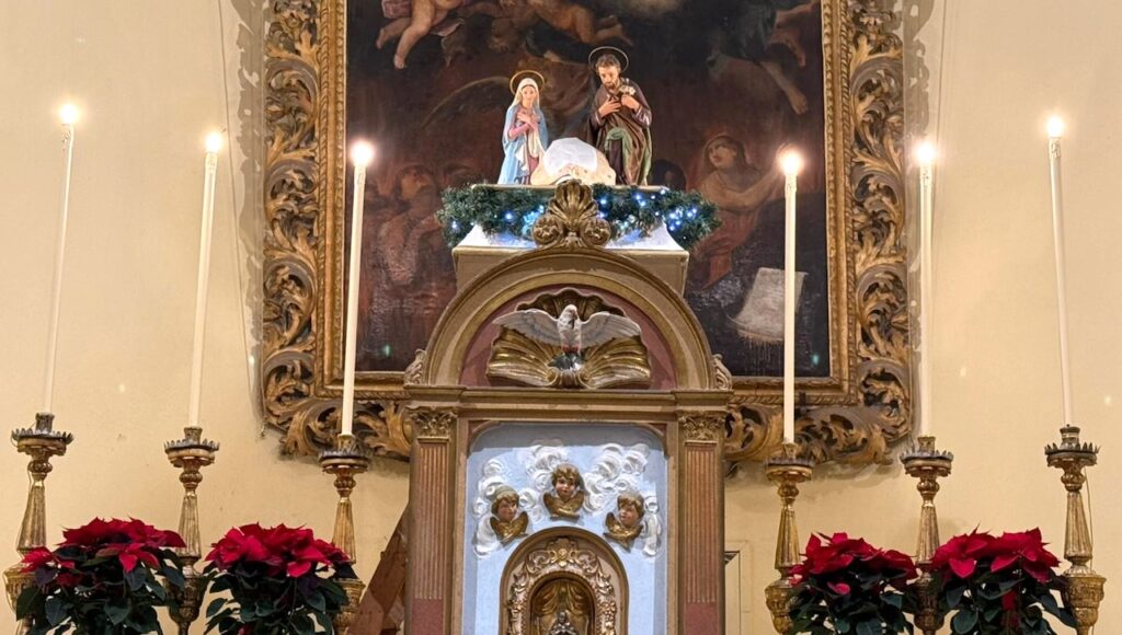Sull’altare maggiore della chiesa del Carmine, è stato collocato un piccolo gruppo statuario rappresentante la Natività (vedi foto all’interno), relegato da tempo all’interno di una nicchia alla destra del portone d’ingresso. “Riguardo al piccolo presepe del Carmine – aggiunge Farina – ringrazio vivamente Antonio Marino con tutti i collaboratori della chiesa per averla messa a nostra disposizione per tutto il periodo festivo e il nostro vicepresidente, Nicolò Scarpato, che si è occupato in prima persona dell’allestimento“.