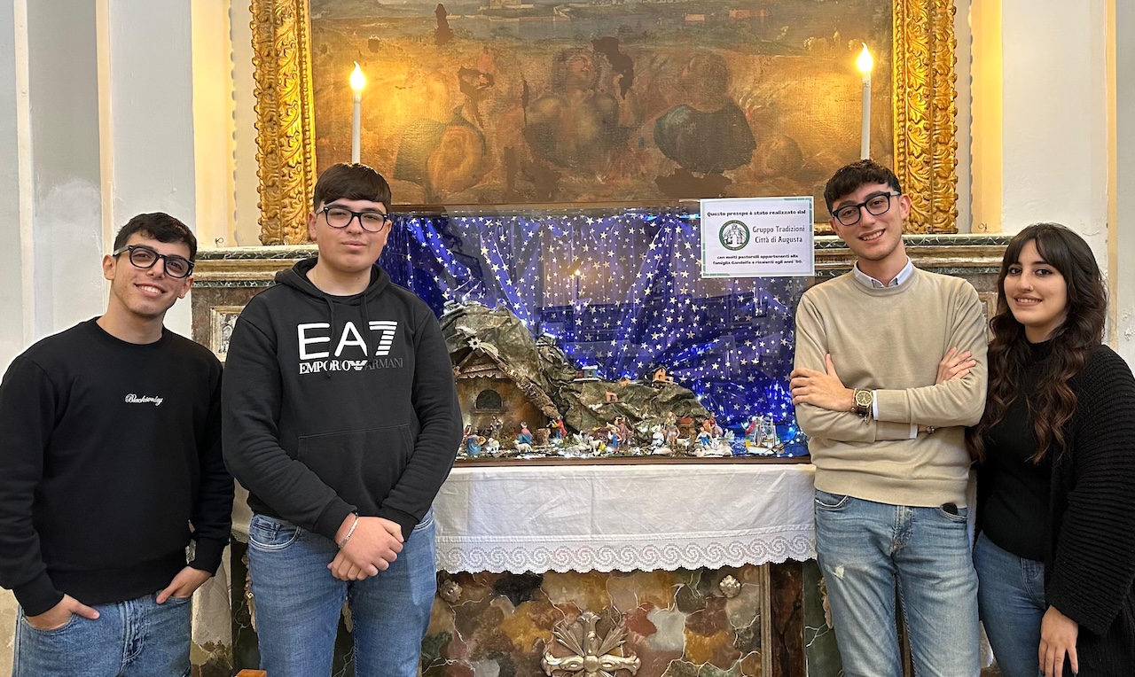 AUGUSTA – Sono in aumento nelle festività natalizie in corso, i presepi in mostra realizzati o quantomeno allestiti in città da giovani, anche nei luoghi sacri, come testimoniano le due piccole ma significative rappresentazioni della Natività nelle chiese confraternali dell’Annunziata e del Carmine.