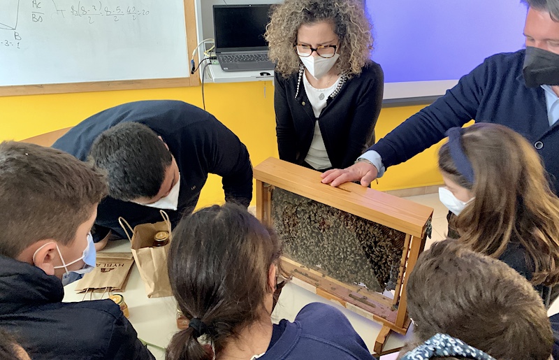 Già ad aprile, il Rotary club cittadino presieduto da Pietro Forestiere ha instaurato per “Sos api” una sinergia con la scuola “Todaro” guidata dalla dirigente Rita Spada e la redazione del giornalino scolastico coordinata dalla docente Antonella Failla. Sono intervenuti in classe (vedi foto all’interno) la delegata rotariana del progetto in provincia Annalisa Iannitti, la delegata di club Adriana Fazio, agronoma, il co-segretario del club Francesco Messina e Francesco Bellomo, noto apicoltore nonché agronomo sortinese. Quest’ultimo, per l’occasione, ha portato in classe un’arnia didattica popolata da circa duemila api e ha mostrato agli studenti come si svolge la vita all’interno dell’alveare, evidenziando perché tali laboriosi insetti sono a rischio e perché il pianeta non può farne a meno.