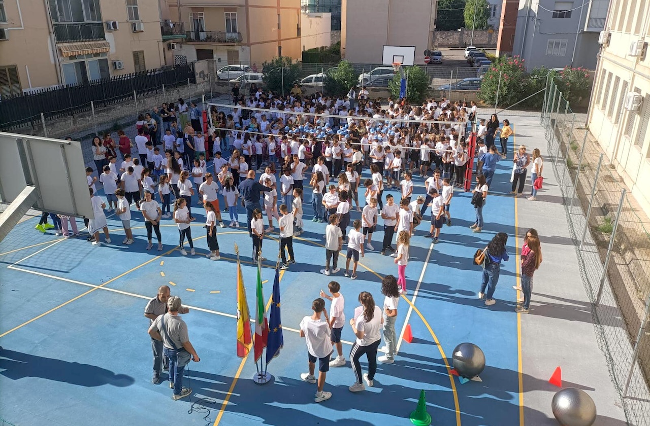 Alla cerimonia di ieri hanno preso parte docenti e alunni del plesso centrale, insieme ad alcuni tra i più piccoli alunni della scuola primaria e ad altri compagni del plesso Cappuccini e del plesso Saline, ex “Todaro”, da quest’anno aggregato al primo istituto comprensivo.
