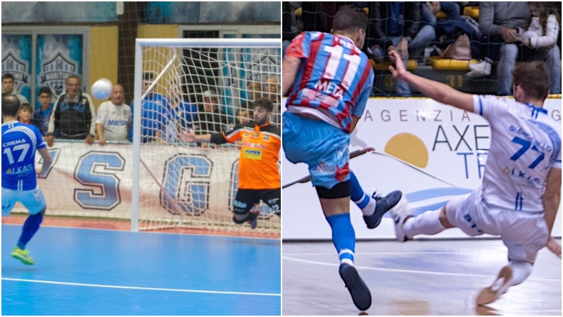 (Nel collage in evidenza, da sx: l’errore di Crema dal dischetto in Coppa della divisione e un’azione della sfida di campionato)