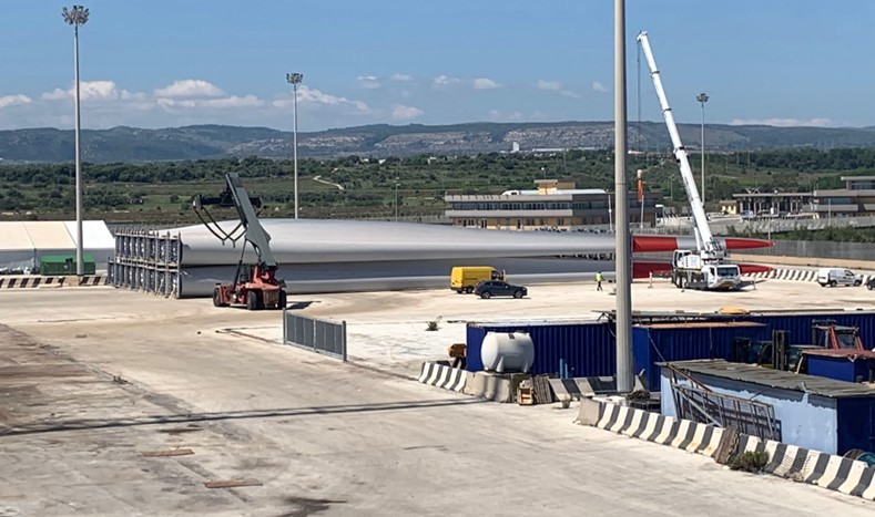 (Nella foto di repertorio in copertina: pale per il parco eolico di Mineo al porto commerciale di Augusta)