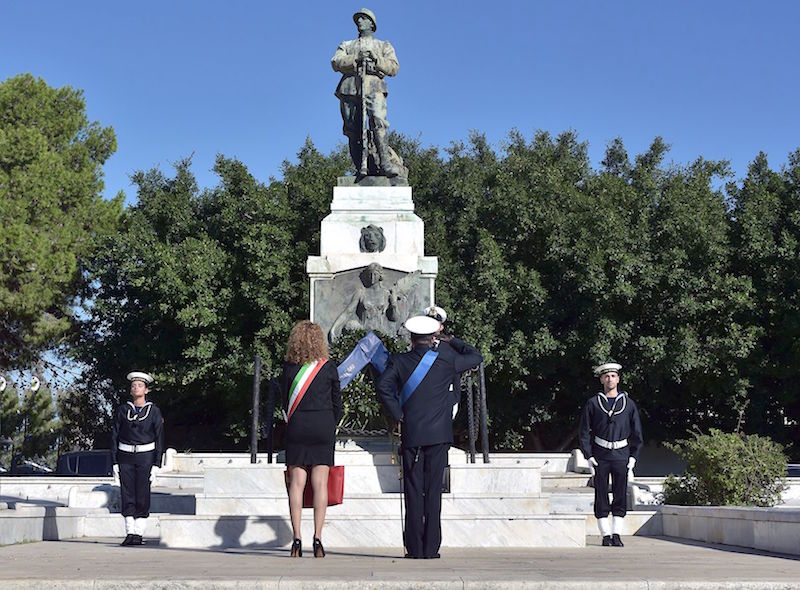 Dalle ore 9 ha avuto luogo la rassegna dello schieramento e la cerimonia dell’alzabandiera, poi sono stati letti i messaggi istituzionali pervenuti. Quindi, momento più solenne, il sindaco Cettina Di Pietro e il contrammiraglio Nicola De Felice, comandante Marisicilia, hanno deposto la corona d’alloro, benedetta dal cappellano militare. Sono state infine consegnate le onorificenze.