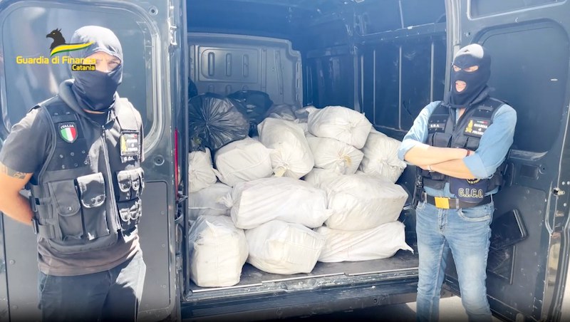 Un mese fa, completate le operazioni di analisi e campionatura della sostanza stupefacente, su autorizzazione della Procura etnea, un convoglio delle Fiamme gialle, composto da un automezzo blindato, diverse vetture (anche della componente specialistica “Antiterrorismo e Pronto impiego”) e un elicottero per la sorveglianza aerea (del reparto operativo Aeronavale di Palermo), ha trasferito il carico sequestrato dalla località segreta, ove era concentrato, all’impianto di termodistruzione Gespi, a Punta Cugno.