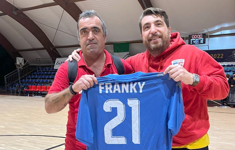 La locale società di futsal, la Fortitudo Pomezia, nata una decina d’anni fa e protagonista di un’importante ascesa fino al 9° posto e ai playoff scudetto della scorsa stagione al debutto nella serie A, ha omaggiato l’augustano davanti al proprio pubblico di una maglia personalizzata, col suo nome e il numero 21.
