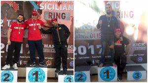 A rappresentare il Team Di Vico, si è presentato, nella categoria di kick light pesi massimi, l’ormai veterano di gare regionali Giuseppe Jaafar, che ha vinto facilmente e conquistando il primo posto. Nella categoria kick light, un ottimo Carmelo Blundo si è portato a casa un secondo posto nei pesi mediomassimi, suo migliore risultato in carriera. Infine, orgoglio del team, Samuele Ardito nei super massimi categoria full contact, dopo aver combattuto un match estenuante, ha conquistato l’agognata vittoria ai punti con verdetto unanime.