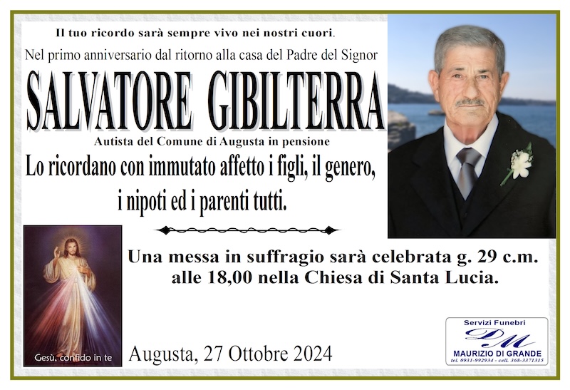 Necrologi – 1° anniversario – Messa in suffragio di Salvatore Gibilterra