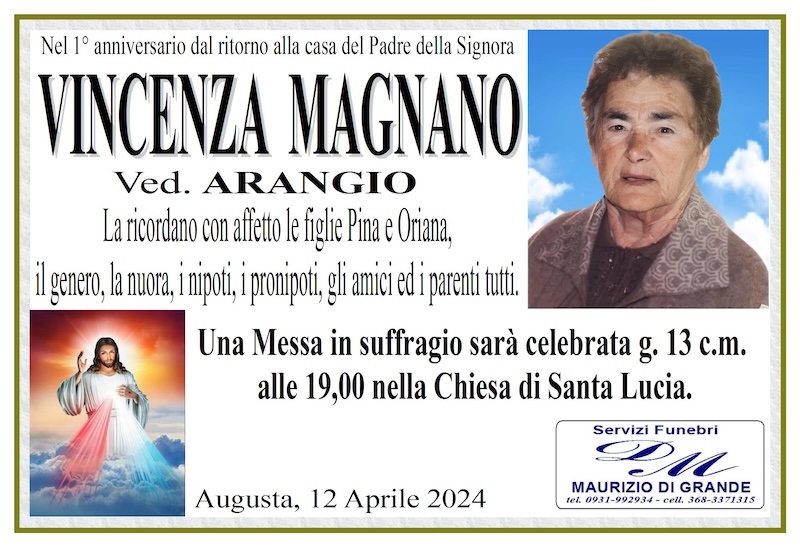 Necrologi – 1° anniversario – Messa in suffragio di Vincenza Magnano