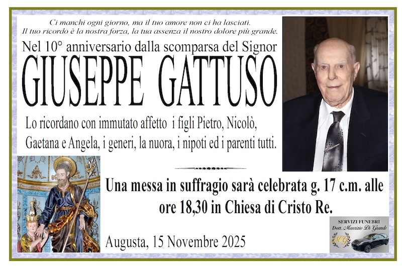 Necrologi – 10° anniversario – Messa in suffragio di Giuseppe Gattuso