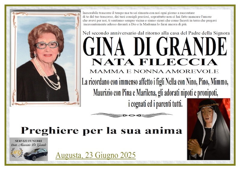 Necrologi – 2° anniversario della scomparsa di Gina Di Grande