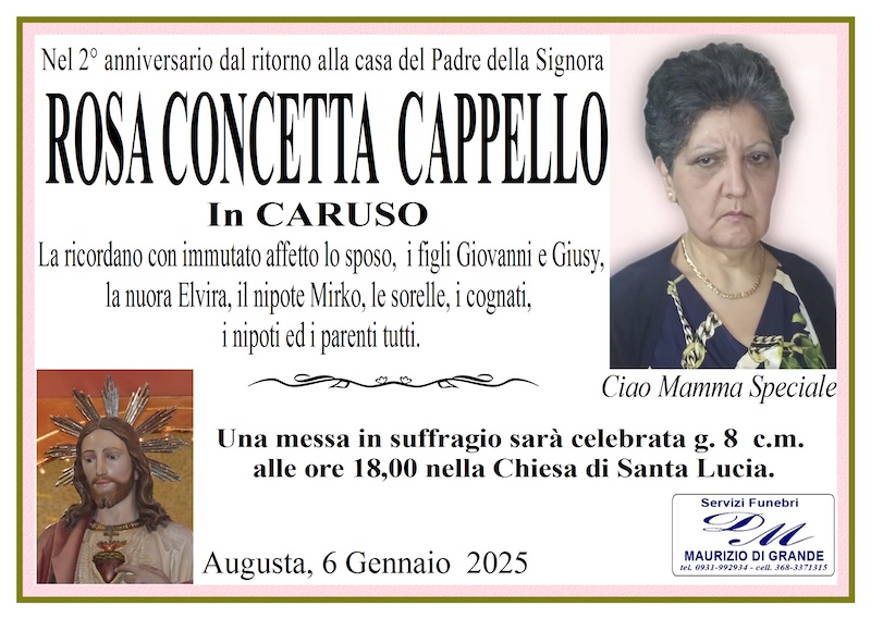 Necrologi – 2° anniversario – Messa in suffragio di Rosa Concetta Cappello