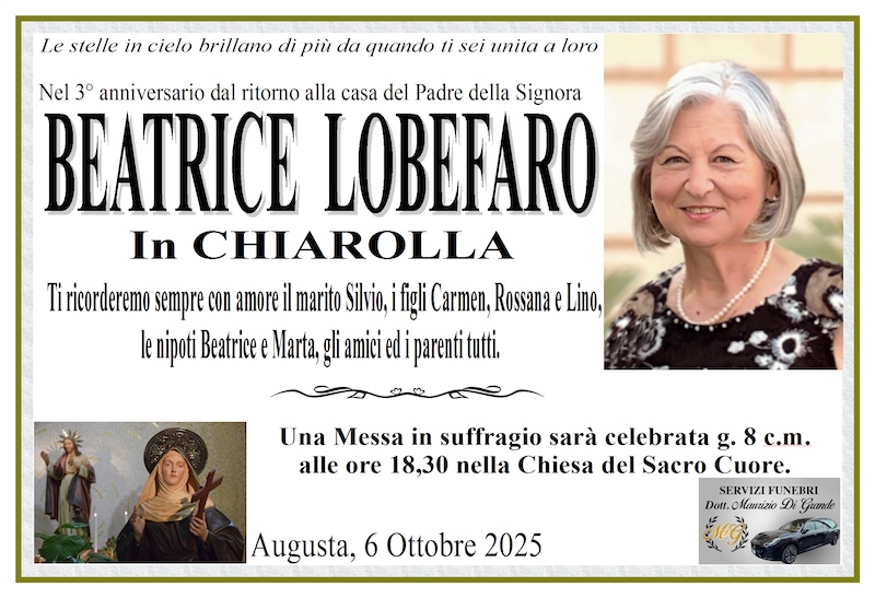 Necrologi – 3° anniversario – Messa in suffragio di Beatrice Lobefaro