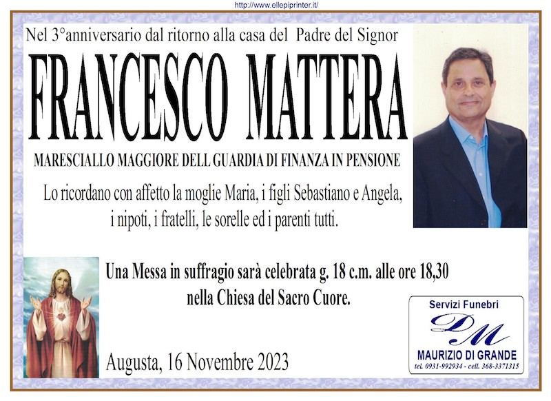 Necrologi – 3° Anniversario – Messa in suffragio di Francesco Mattera