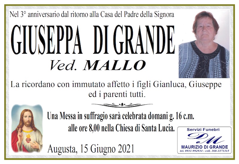 Necrologi – 3° Anniversario – Messa in suffragio di Giuseppa Di Grande