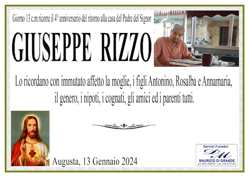 Necrologi – 4° Anniversario – Giuseppe Rizzo