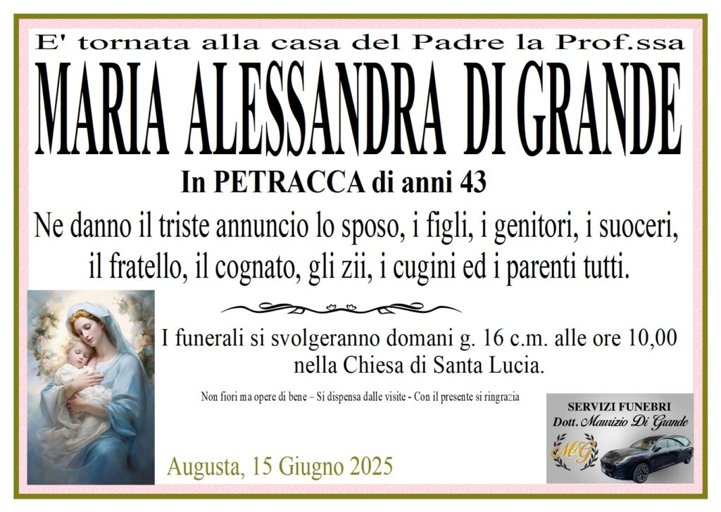 Necrologi – Si è spenta la prof.ssa Maria Alessandra Di Grande di anni 43