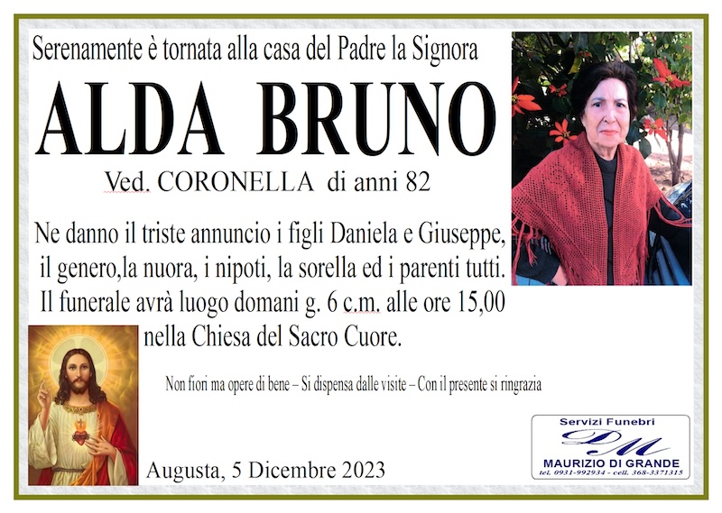 Necrologi – Si è spenta la signora Alda Bruno di anni 82