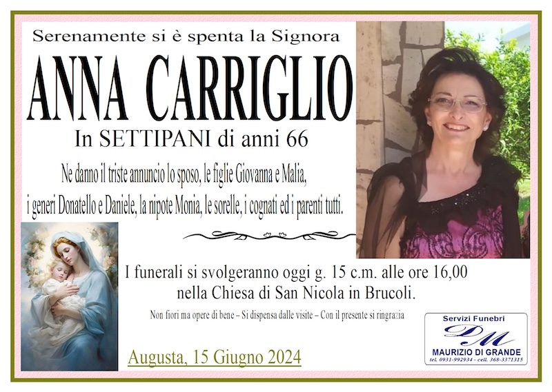 Necrologi – Si è spenta la signora Anna Carriglio di anni 66