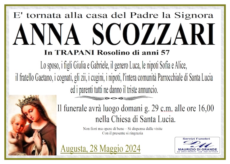 Necrologi – Si è spenta la signora Anna Scozzari di anni 57