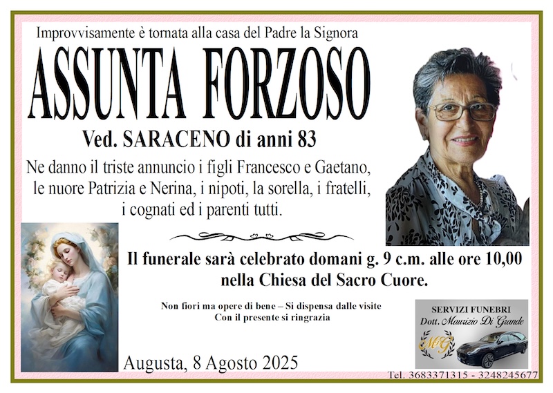 Necrologi – Si è spenta la signora Assunta Forzoso di anni 83