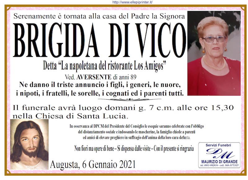 Necrologi – Si è spenta la signora Brigida Di Vico di anni 89