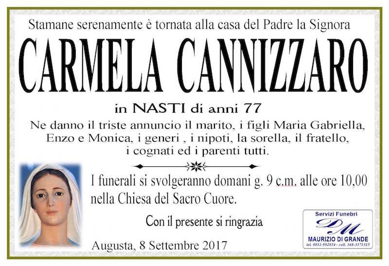 Necrologi – Si è spenta la signora Carmela Cannizzaro di anni 77
