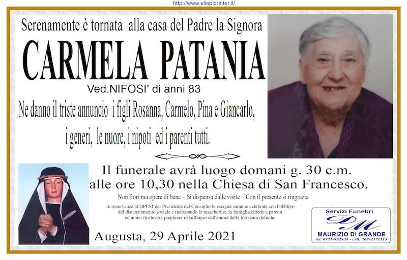 Necrologi – Si è spenta la signora Carmela Patania di anni 83