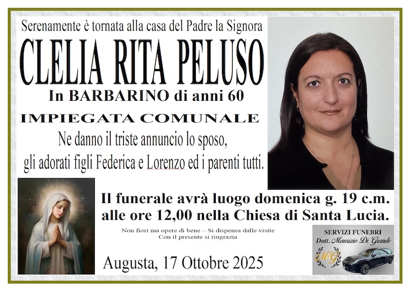 Necrologi – Si è spenta la signora Clelia Rita Peluso di anni 60